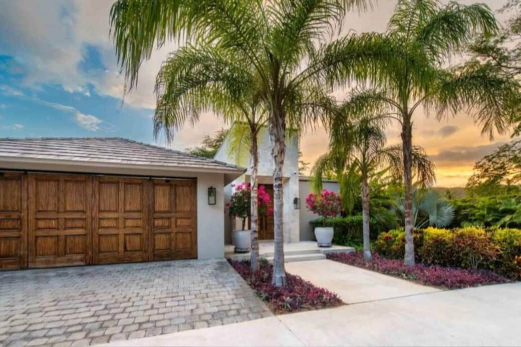 Main Bedroom with large bathroom, king size bed, and direct access to all outdoor patio, garden, and pool areas.